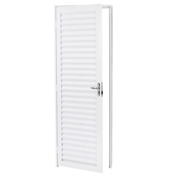 A Porta de Aço une a robustez do metal com a praticidade do acabamento pronto. Com 85cm de largura, este modelo oferece uma passagem mais ampla, facilitando o fluxo de pessoas e a passagem de móveis. Sua pintura eletrostática branca garante um visual moderno, limpo e altamente resistente à corrosão, sendo a escolha inteligente para quem busca durabilidade e baixo custo de manutenção.