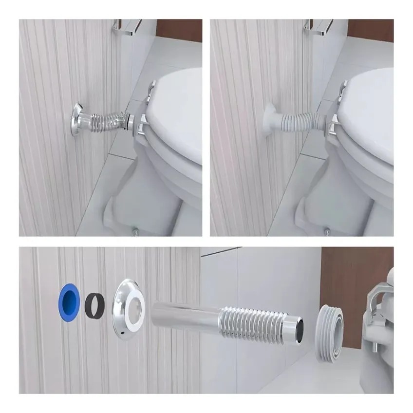 O Tubo de Ligação Ajustável é a solução definitiva para conectar a tubulação de água à bacia sanitária com perfeição e elegância. Graças ao seu design inteligente e expansível, ele compensa variações de distância e desalinhamentos, garantindo uma instalação estanque e segura. Com acabamento cromado de alto brilho, ele não apenas cumpre sua função técnica, mas também agrega um acabamento estético superior ao seu banheiro.